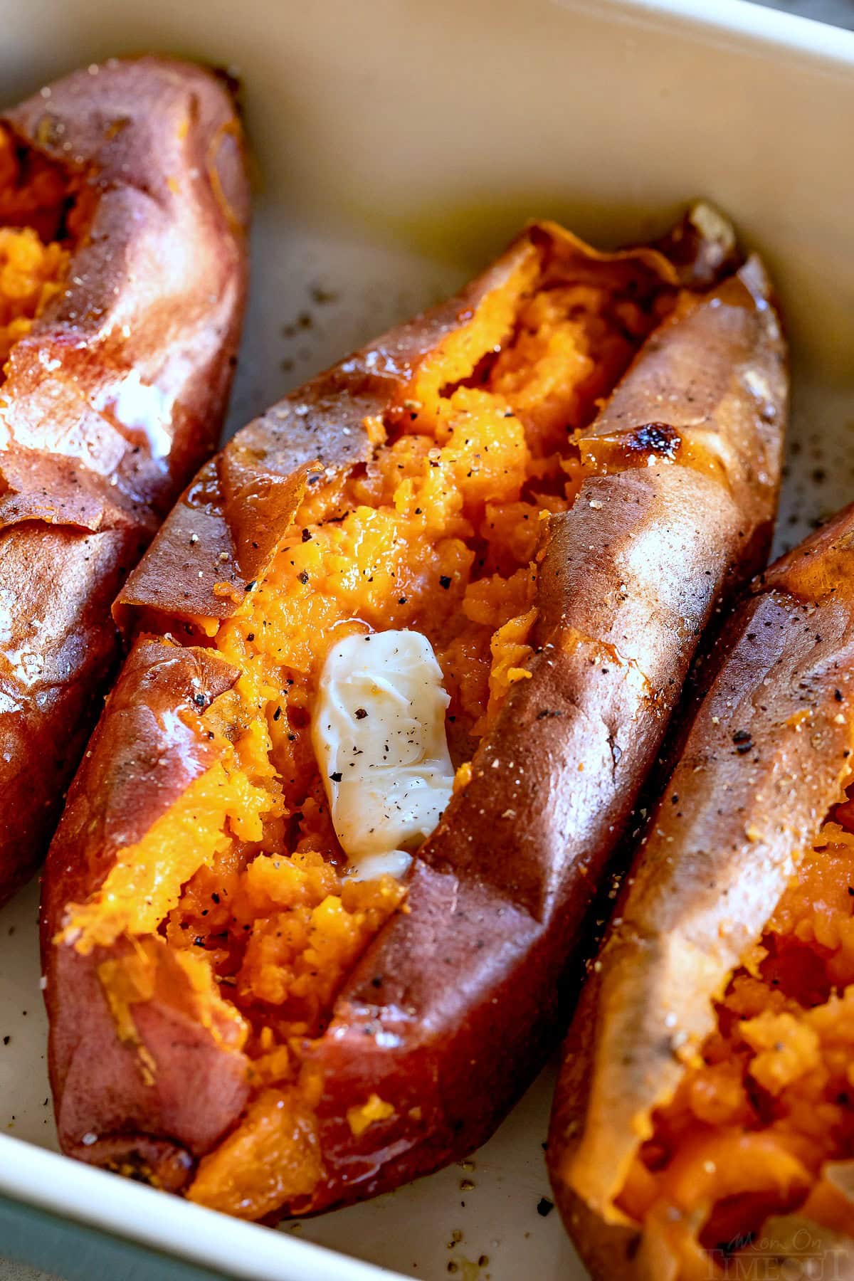 Whether you take them the savory route with a sprinkle of salt and pepper and a slice of butter OR go the sweet route and top them with a little brown sugar and cinnamon AND of course a little butter, you really can’t go wrong.