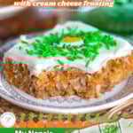 These bars come together quickly without a mixer, easily accessible ingredients and no complicated steps. Youโll combine the wet ingredients, stir in the dry ingredients and fold in the mix-ins before baking everything in one jelly roll pan. Once cooled, a generous layer of cream cheese frosting is spread over the top for the perfect finishing touch. Decorate or leave plain – the choice is yours!
