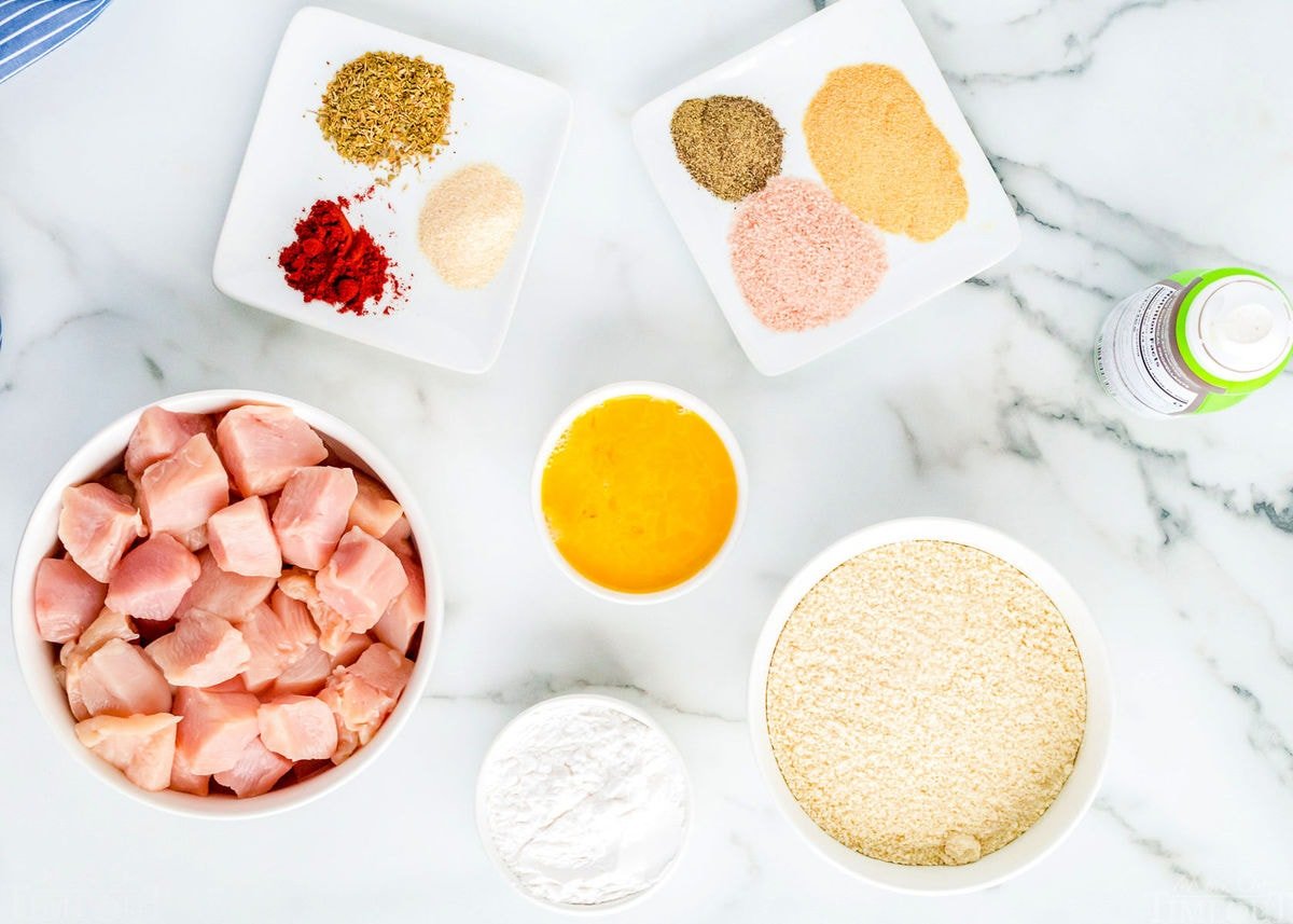 - Spices (garlic powder, onion powder, oregano, paprika, salt, pepper) – all enhance flavor and give these nuggets their amazing flavor
