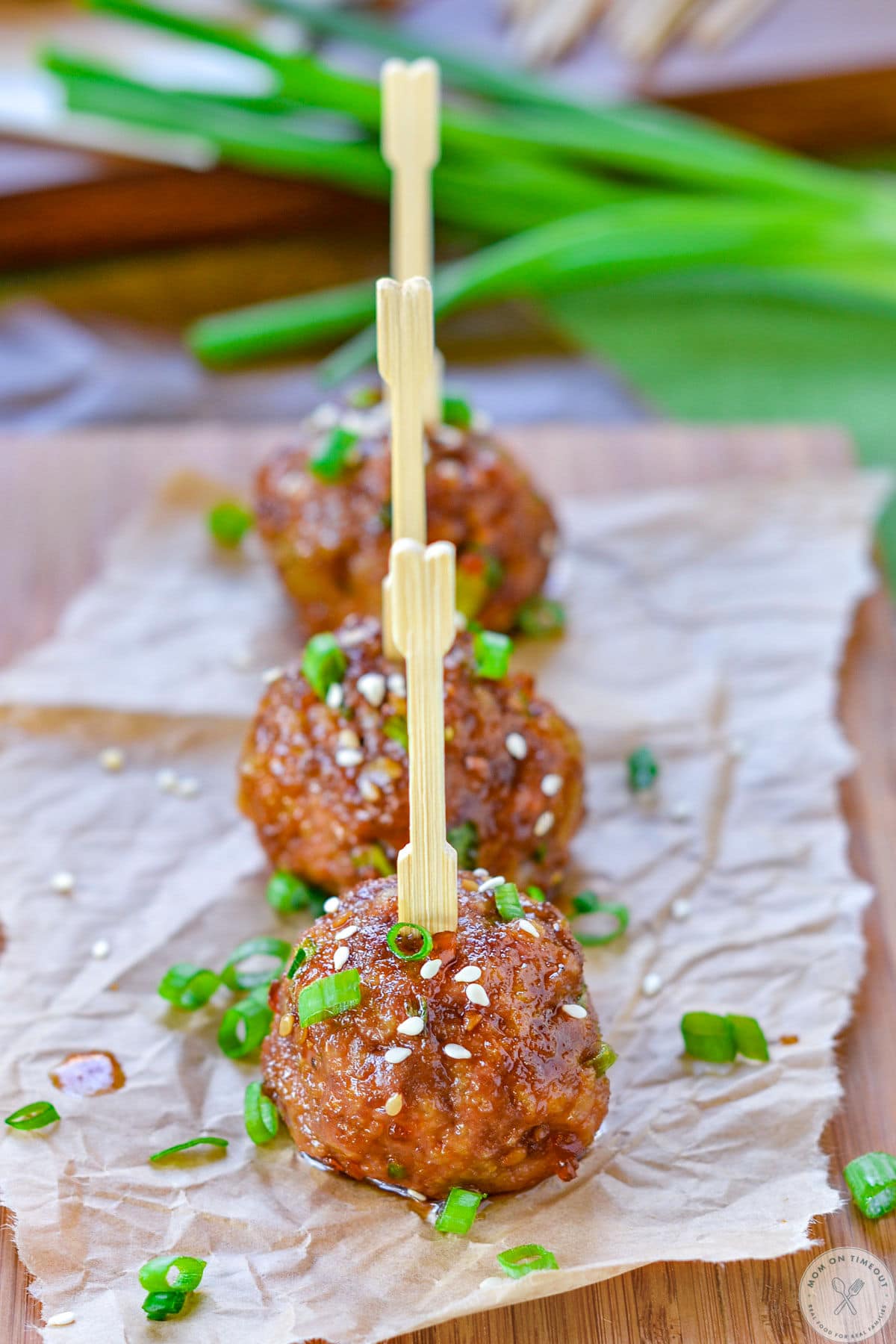 - Toss meatballs in teriyaki sauce, green onions and sesame seeds. Serve immediately with toothpicks or over rice.